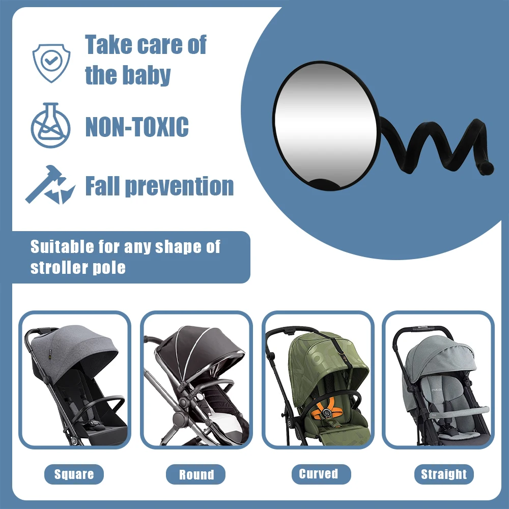 2/Our stroller mirror lens is made of acrylic, it is shatterproof and prevents heat reflection onto your baby. And easy to install for the silicone leg.