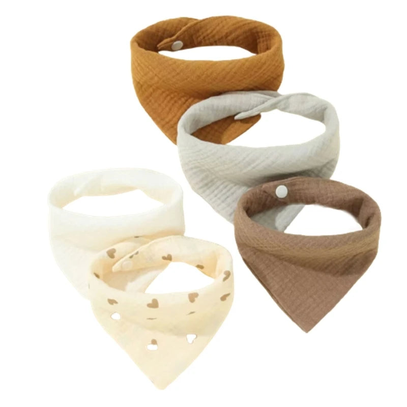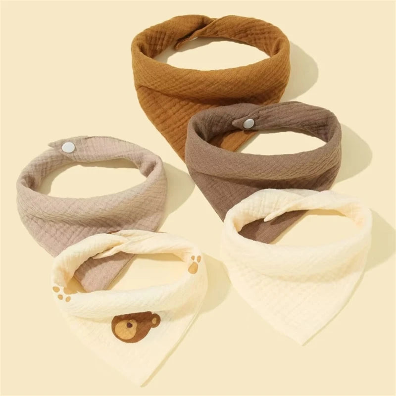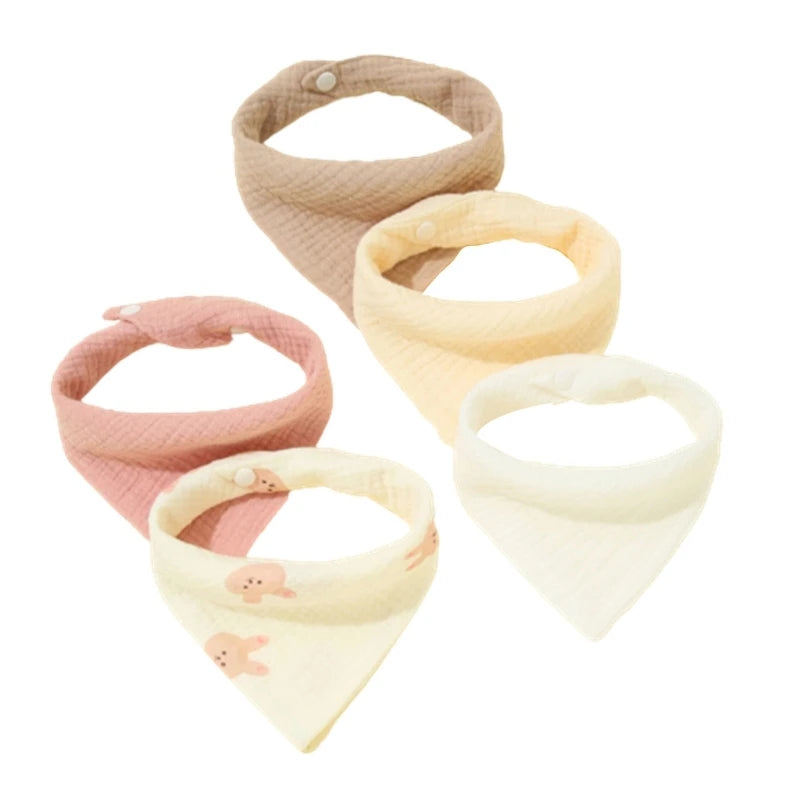 5Pcs Feeding Drool Bibs Cotton Accessories Newborn Solid Color Button Soft Towel Baby Bibs