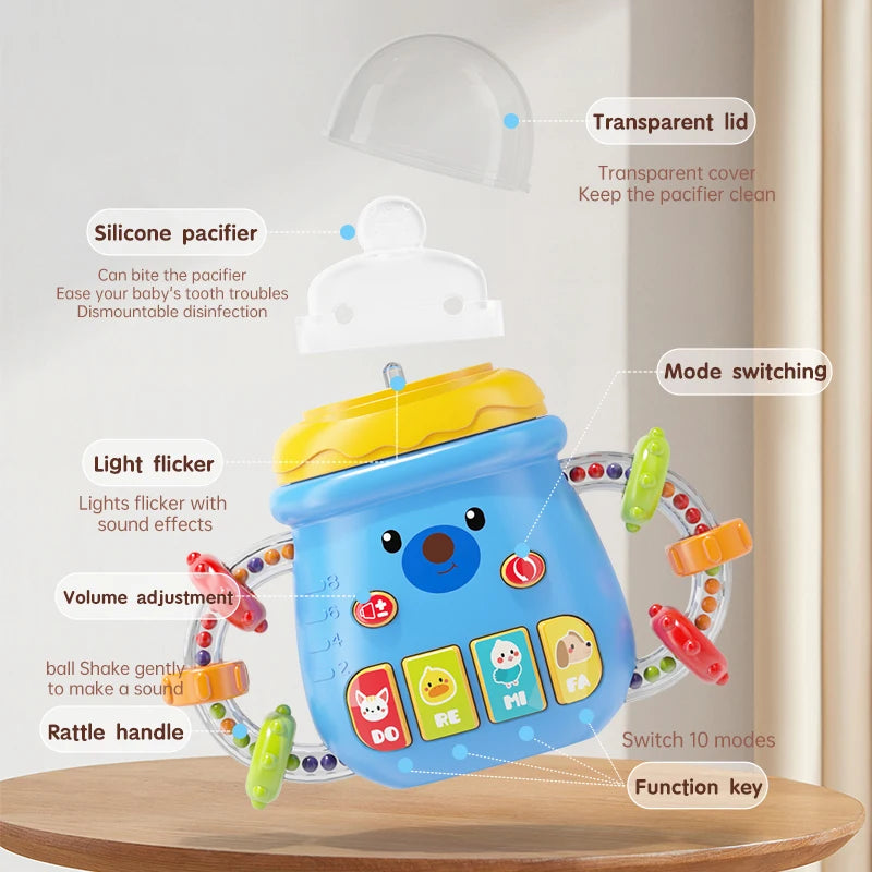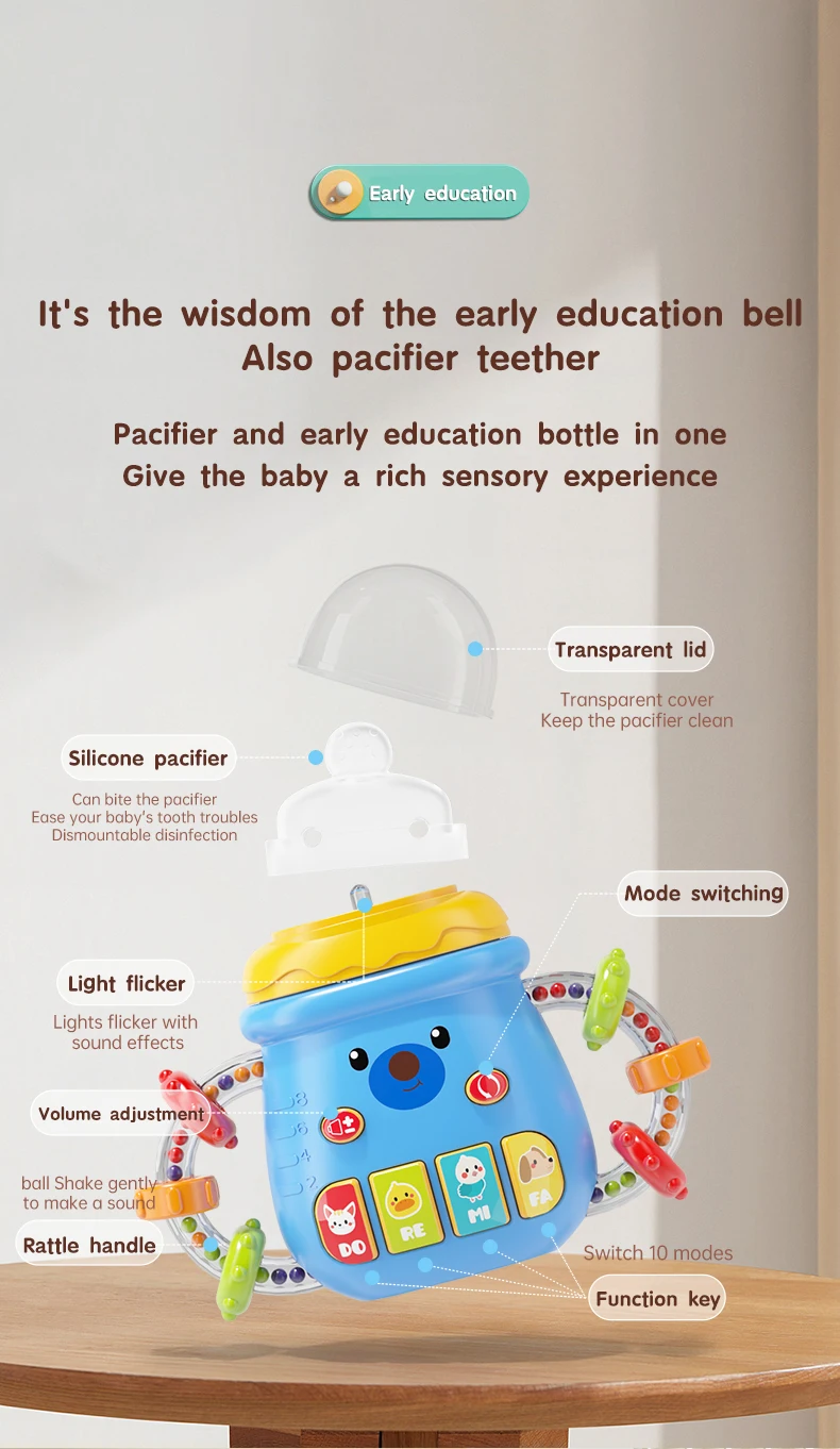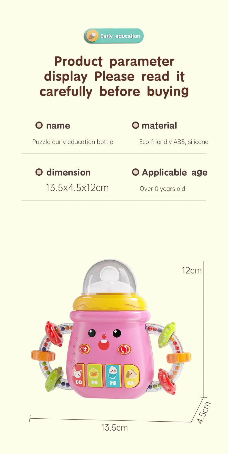 Baby Musical Feeding Bottle Pacifier 0-12M Newborn Soft Teether Rattles Educational Toy Mobile Soothing Vocal Music Rattles Toys