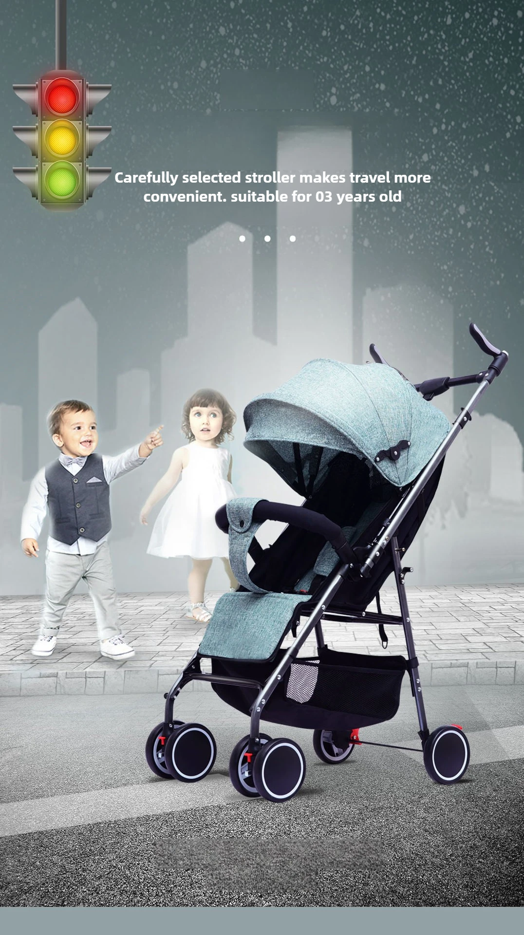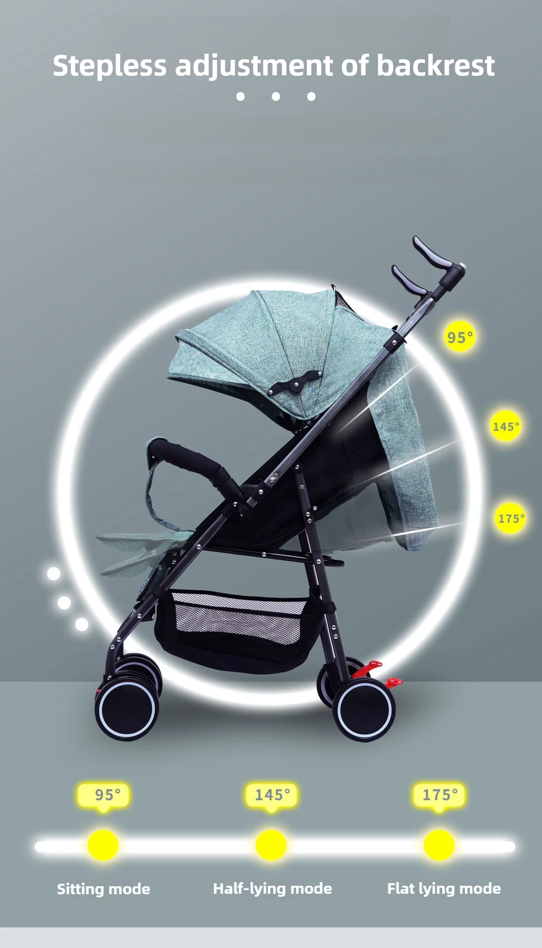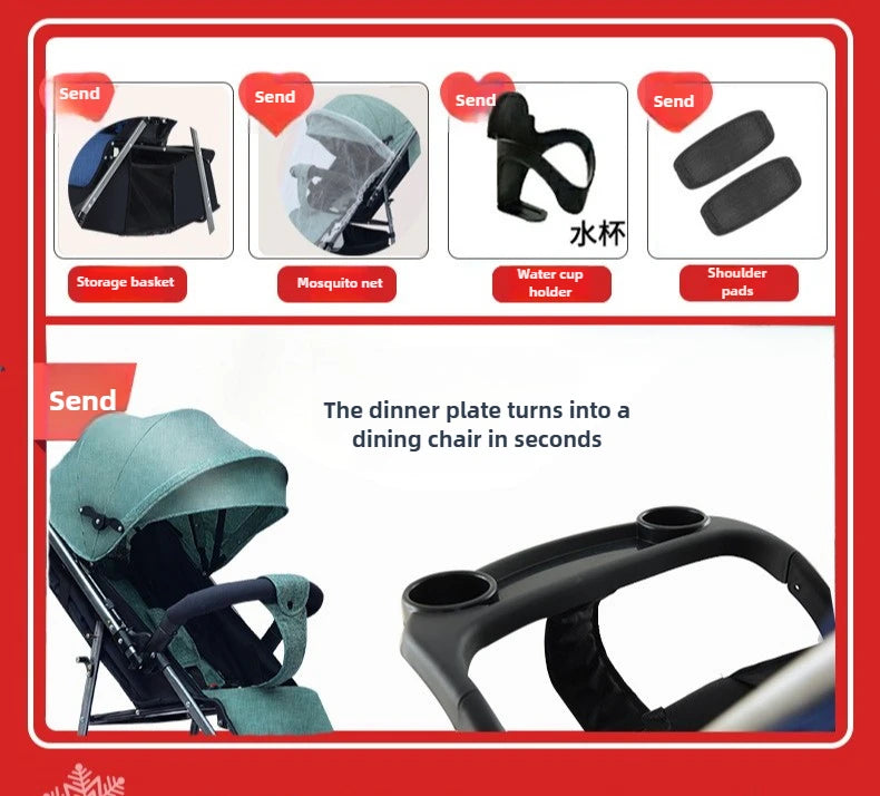 Baby Stroller Can Sit and Lie Down, Lightweight, Two-way, One-button Folding, Shock-absorbing, 0 To 3 Years Old Stroller