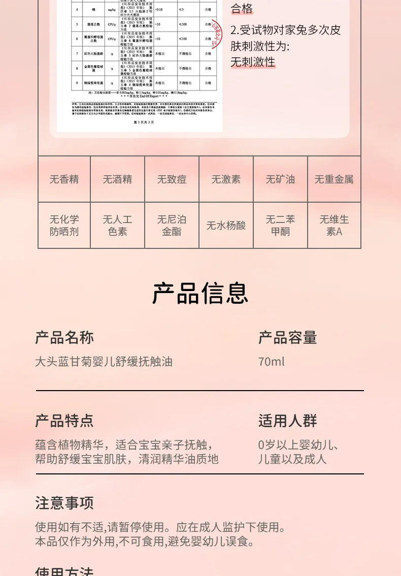 A: Touch oil is specially developed for massage. It is recommended to use special face cream for baby facial care.