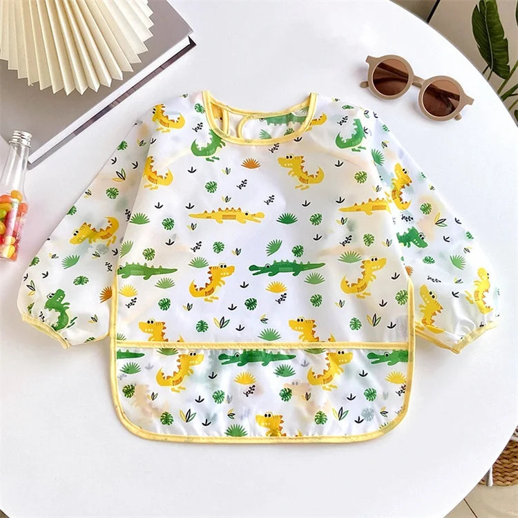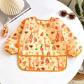 Baby's Soft Bib Kid Cute Cartoon Long Sleeves Adjustable Feeding Cloth For Boys Girls Painting Smock Toddlers Meal Eating Apron