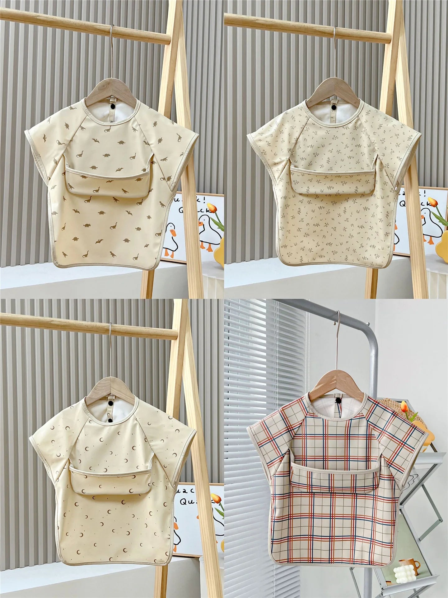 Cute Baby Bibs Toddler Baberos Bavoir Waterproof Short Sleeve Apron Cartoon Animals Children Feeding Smock Bib Baby Stuff 0-6Y