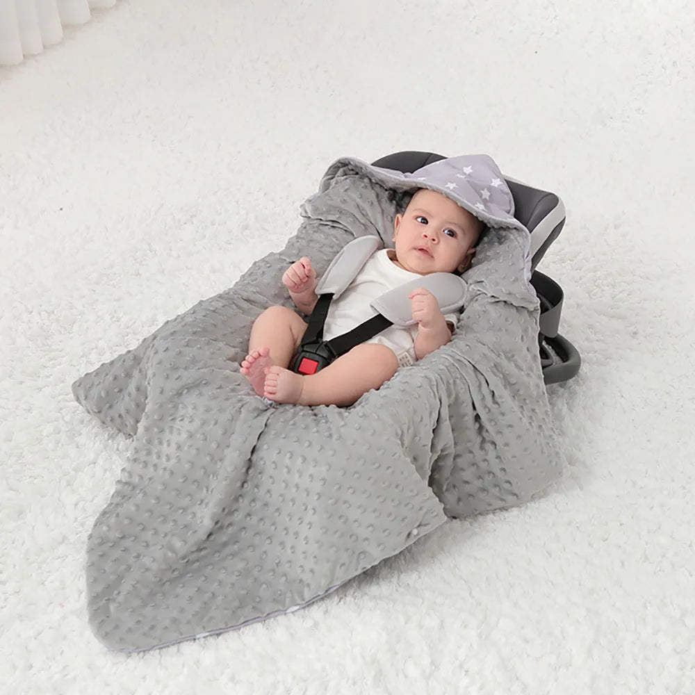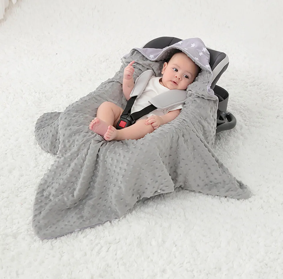 Newborn Baby Blanket 0-3Months Sleeping On Basket Stroller Car Seats Outside Travel Portable Windproof Warm Swaddle Wrap Hooded