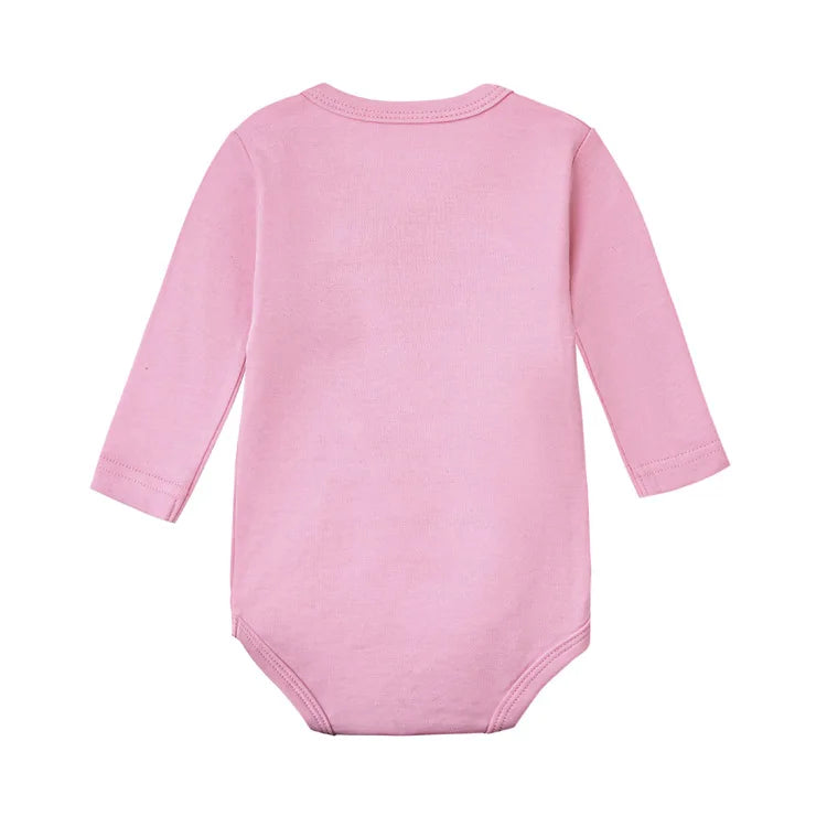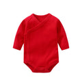 Newborn Baby Bodysuit 0 To 3 Months 100% Cotton Slanting Open Button Solid Color Long Sleeve Jumpsuits Baby Boy Girl Clothes