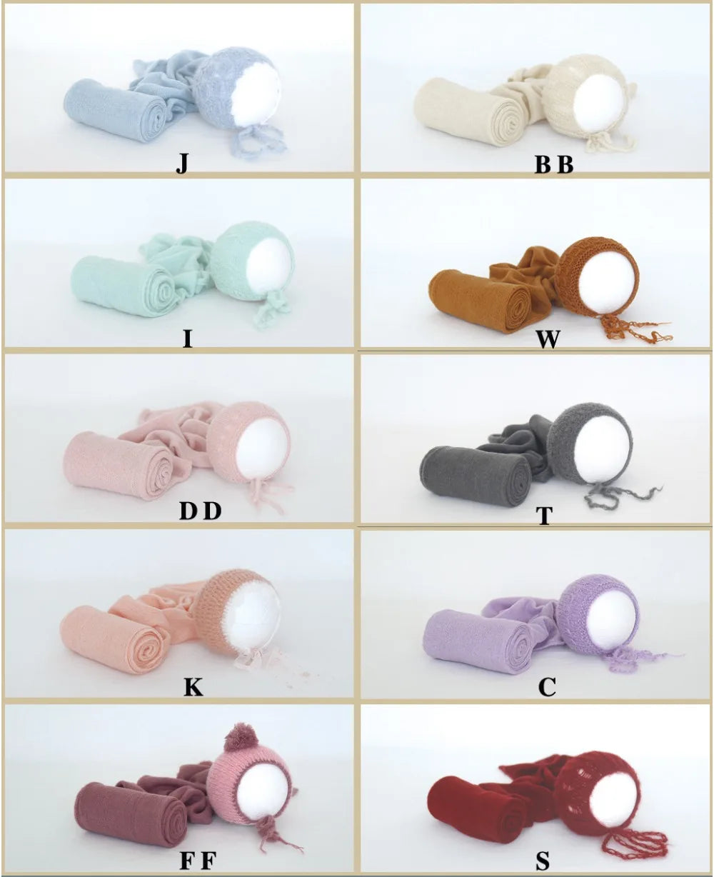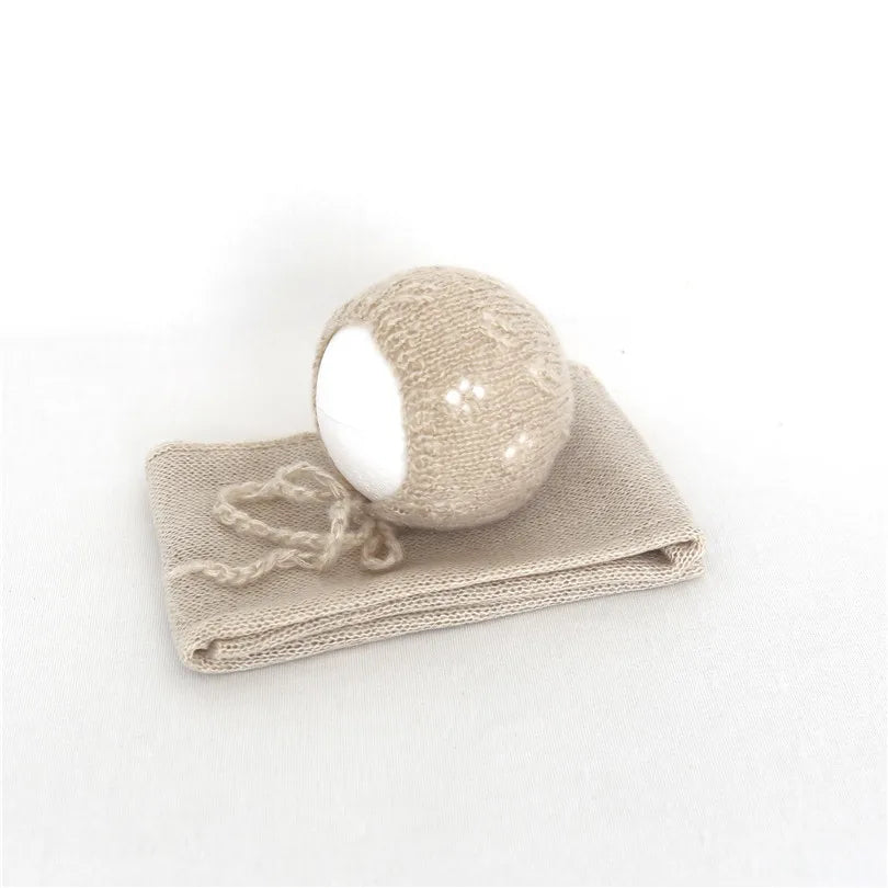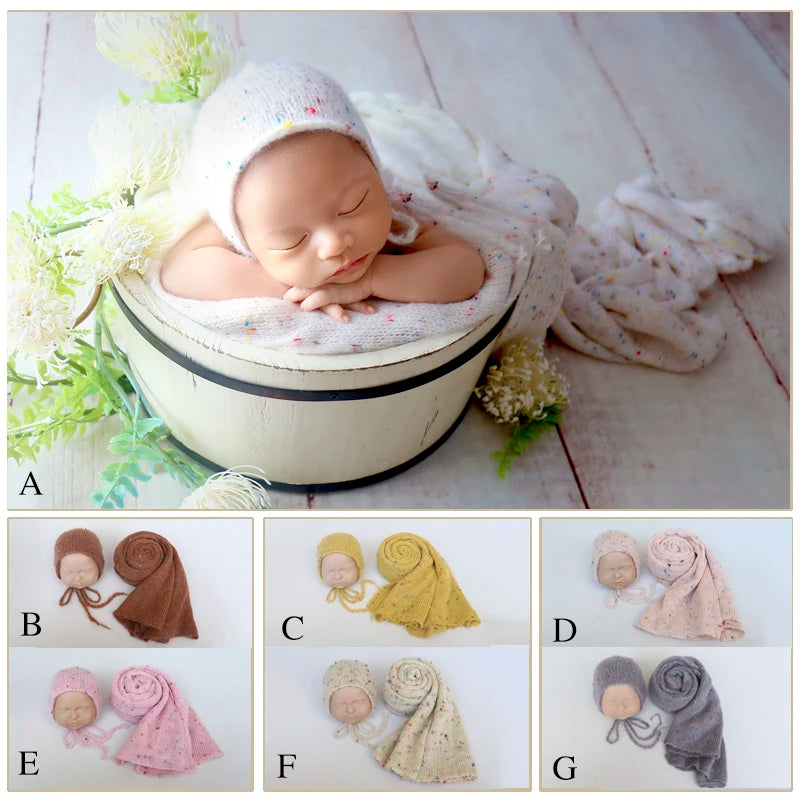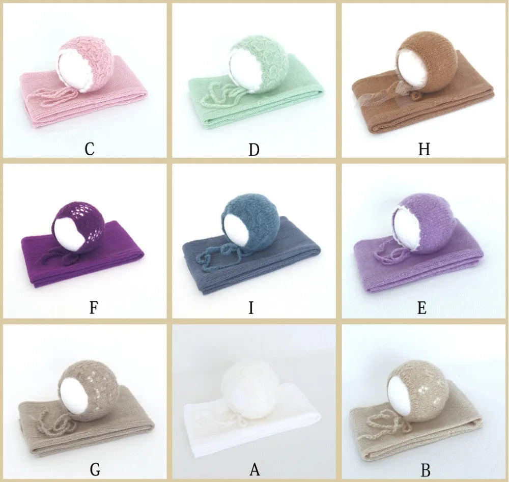 Newborn Stretch Wrap A Lovely Set Of Lace Hat Cap Baby Photography Prop Outfit New Born Knit Mohair Wrap And Bonnet Sets