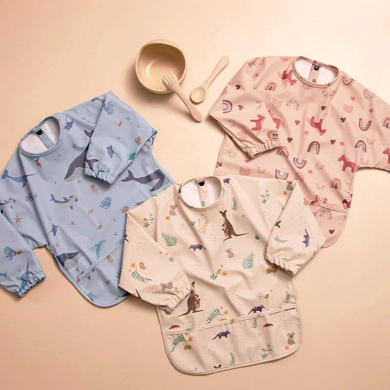 Waterproof Newborn Baby Bibs Children's Painting Smock Bib with Long Sleeves for Boys Girls Easy Clean Feeding Apron Baby Stuff